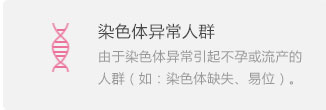 由于染色体异常引起不孕或流产的人群(如:染色体缺失、易位)。